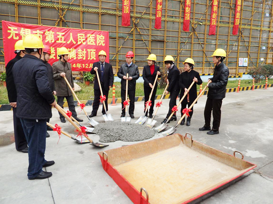12月11日上午10時(shí)18分,無(wú)錫市第五人民醫(yī)院項(xiàng)目現(xiàn)場(chǎng)鞭炮齊鳴、掌聲雷動(dòng),在市第五人民醫(yī)院、市城市投資發(fā)展有限公司等單位代表的共同見證下,第五人民醫(yī)院門診綜合樓項(xiàng)目頂層最后一方混凝土澆筑完成,項(xiàng)目主體結(jié)構(gòu)順利封頂。