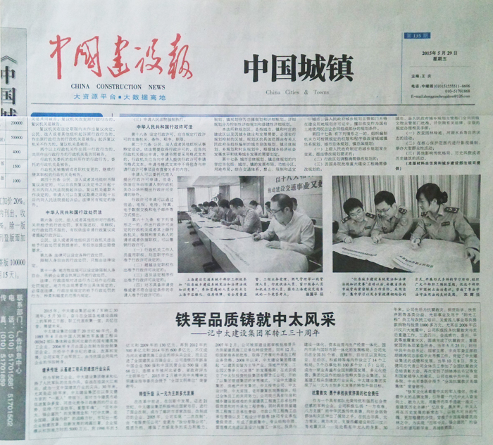 2015年,中太建設集團迎來了軍轉工30周年。5月30日,奮斗在全國各地建設戰線上的軍轉工干部、職工代表歡聚一堂,共憶往昔,展望未來。