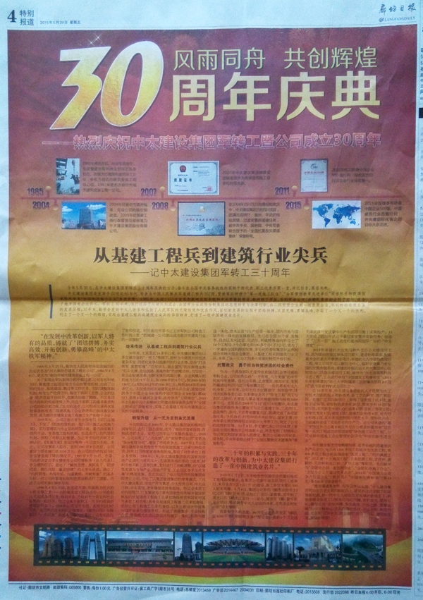 “三十年的積累與實踐,三十年的改革與創新,為中太建設集團打造了一張中國建筑業名片。”