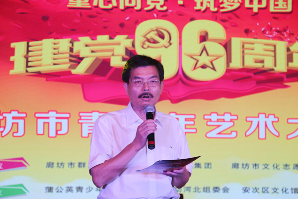 他在致詞中指出,今天我們在這里慶祝黨的“生日”,舉辦“中太之聲――童心向黨·筑夢中國”,慶祝中國共產黨建黨96周年青少年藝術選拔賽和大聯歡活動,是為了更好地歌頌中國共產黨領導的中國革命和社會主義建設所取得的豐功偉績與偉大成就,激發廣大黨員和青少年知黨、愛黨、跟黨走的情懷和立志成才、報效祖國的決心,也是展示我們廊坊市青少年優秀藝術新人風采,提高青少年思想與藝術素質一次良好機會。希望這樣的慶;顒雍汀捌压⒂媱潯甭鋵嵭袆幽軋猿窒氯,越辦越好。為黨和國家培育與輸送我們河北廊坊更多的青少年藝術新人和優秀人才,同時他號召集團公司各級黨組織要團結、帶領廣大黨員與黨中央保持高度一致,以黨的事業為重,與時俱進,聯系實際,積極工作,攻堅克難,勇于擔當,充分地發揮好黨組織的凝聚力和黨員的模范帶頭作用,為中太的持續創新、健康和諧發展,為振興河北、繁榮廊坊,實現黨和國家“兩個一百年”的奮斗目標而不懈地努力,以優異的成績迎接黨的“十九大”的勝利召開。