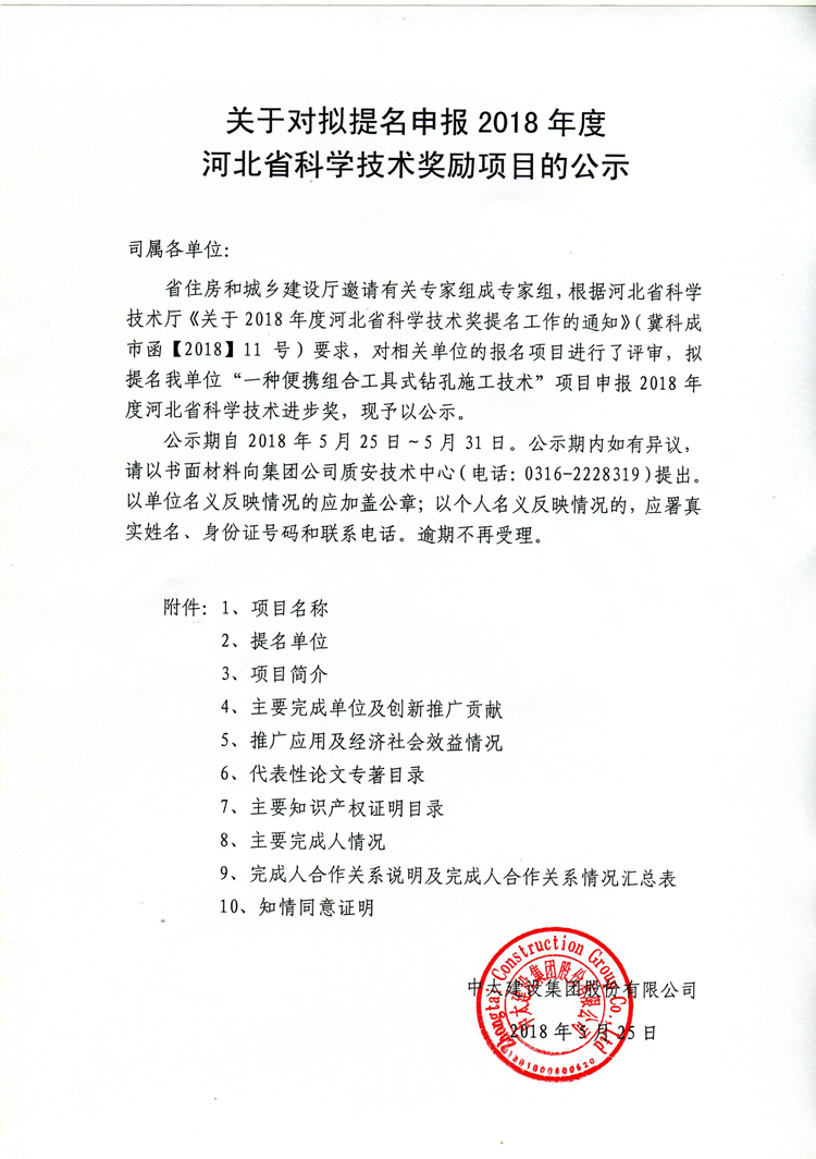 關(guān)于對(duì)擬提名申報(bào)2018年度河北省科學(xué)技術(shù)獎(jiǎng)勵(lì)項(xiàng)目的公示