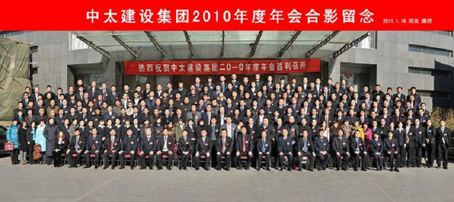 “規范管理謀發展 創先爭優譜新篇”。在辭舊迎新之際,1月16日上午,中太建設集團在廊坊中太大廈二樓報告廳隆重召開了2010年度年會,總結過去,謀劃未來。董事局主席、黨委書記李文健到會并做重要講話。中太投資控股集團副總裁趙志民,董事局成員(董事局秘書);監事會成員;經營層成員;來自全國各地的各工程局長、副局長;外埠各分公司、子公司(董事長、經理、書記);廊坊區域分公司、子公司(董事長、經理、書記、副經理、主任工程師、辦公室主任);總部機關全體人員;2010年度部分受集團表彰先進集體和先進個人共計300人參加了會議。大會由集團副總裁劉啟友主持。