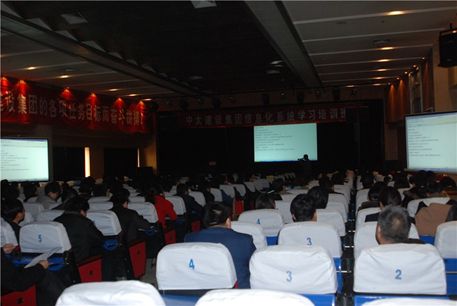 4月1日,集團(tuán)公司在中太大廈二樓報(bào)告廳舉辦為期兩天的施工總承包企業(yè)特級(jí)資質(zhì)信息化培訓(xùn)班。公司副總裁劉啟友做開(kāi)班動(dòng)員講話。副總裁楊剛、張國(guó)棟主持?偛棉k公室網(wǎng)絡(luò)管理員王永安授課。