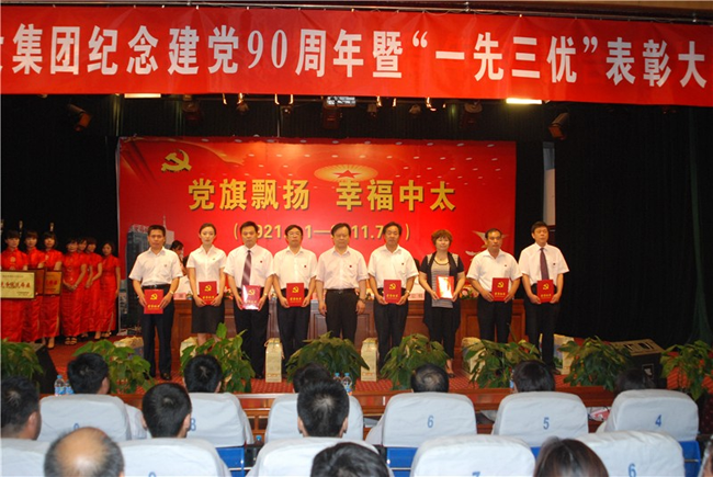 會議對中太投資控股集團投資控股公司機關黨支部等5個“先進黨支部”、劉啟友等39名“優秀共產黨員”、趙廣懷等8名“優秀黨務工作者”、閆建薇等9名“優秀黨小組長”及建設集團機關黨支部等3個“創先爭優先鋒旗”黨組織、封志康等10名“創先爭優模范星”黨員進行了隆重表彰。