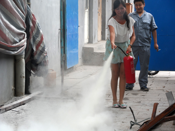 在實際操作及現場演練培訓中,操作方法得當,未出現驚慌失措現象。最后人人會報警、會使用滅火器和消防栓,達到了預期培訓的目的。(劉翠蘭)