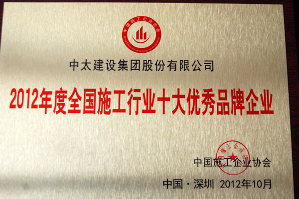2012年度全國施工行業十大優秀品牌企業