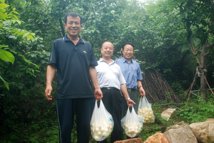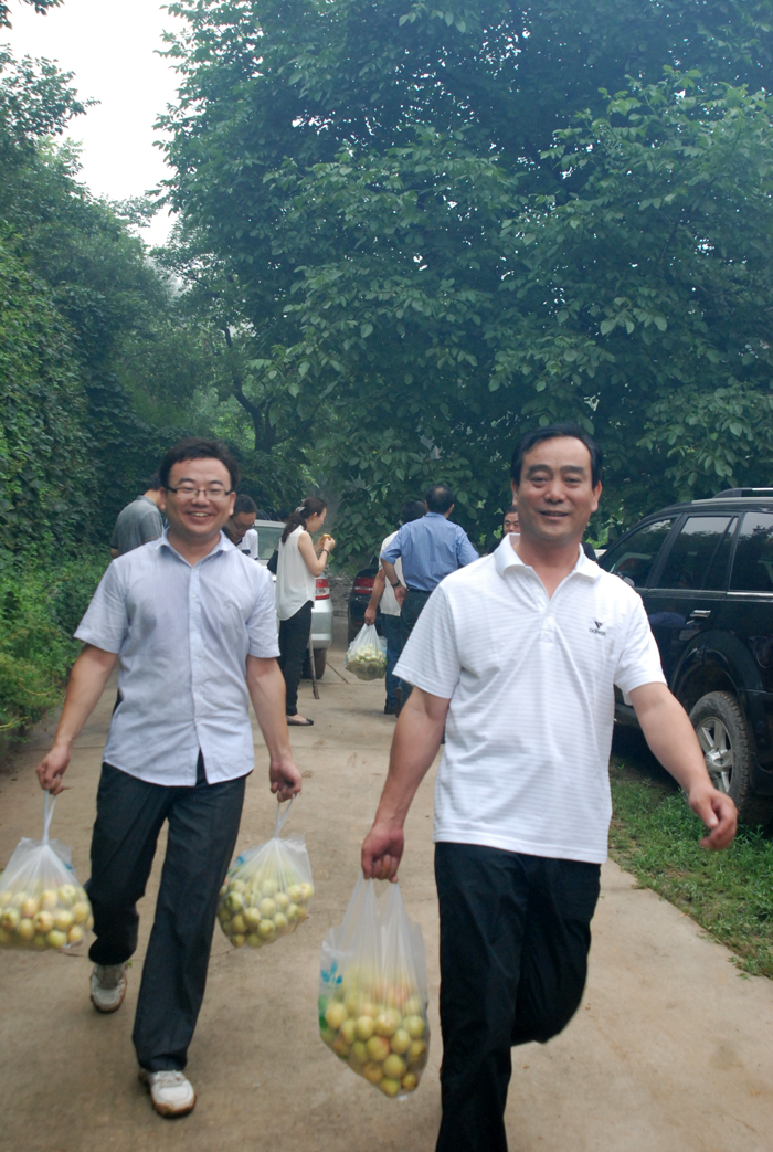 從京承高速公路下道,兩輛大巴車沿著崎嶇山路緩慢行駛。山道兩側(cè)灌木郁郁蔥蔥,置身于這天然氧吧,清新的空氣順暢地能讓人一下子呼吸到了丹田而心神氣爽。一路上,路邊采摘的果園比比皆是。空氣中那果實(shí)散發(fā)出的清香,直入心脾,令人口舌生津。