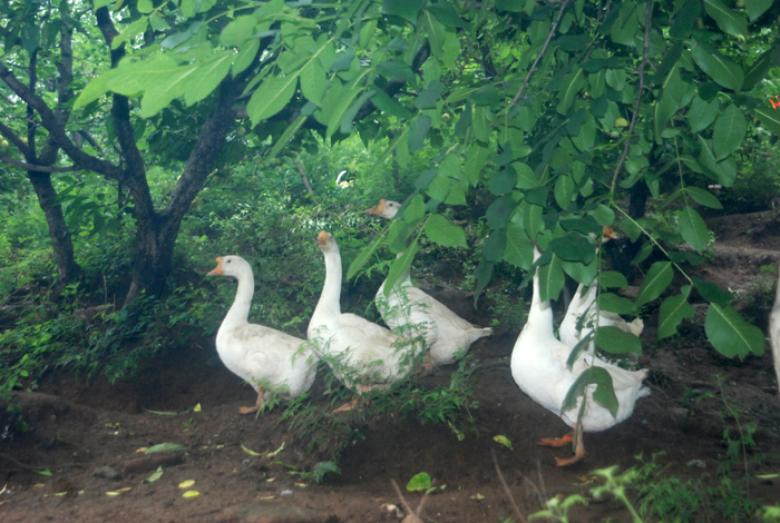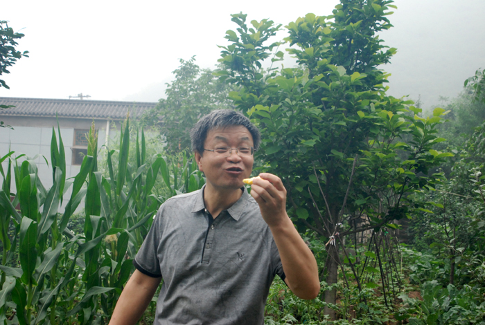 據(jù)第八工程局工作人員介紹,此采摘處約有20畝果樹林地。山上種植著杏兒、桃兒和核桃。山下院內(nèi)菜園里,種植著施用農(nóng)家肥的各類時(shí)蔬和植物。以蟲兒、草兒為食、自由散養(yǎng)的雞鴨悠閑漫步在山林中,好一派恬靜如詩(shī)、優(yōu)美如畫的田園風(fēng)光。