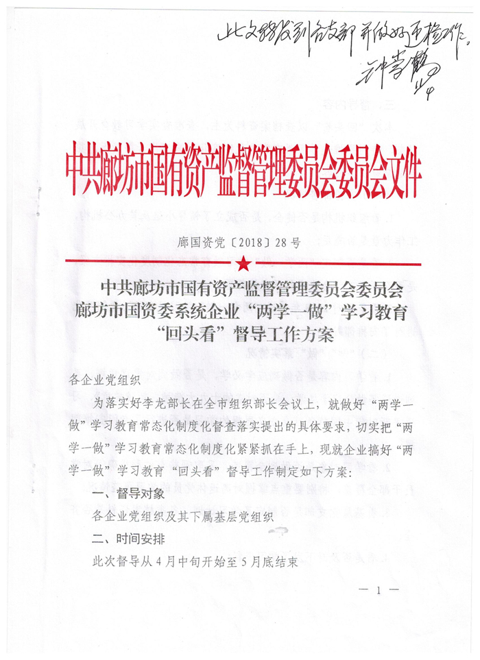 附件:《廊坊市國資委系統企業“兩學一做”學習教育“回頭看”督導工作方案》