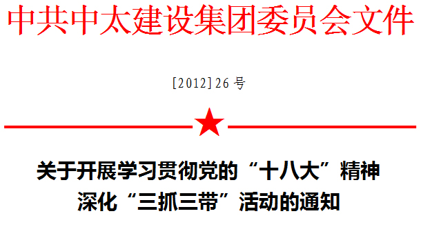 以科學發(fā)展觀為指導,以學習貫徹落實黨的“十八大”精神、爭創(chuàng)新業(yè)績?yōu)橹骶,圍繞“抓創(chuàng)新、促科學發(fā)展,抓項目、促員工增收,抓落實、促作風轉(zhuǎn)變”的主題,在集團公司各級黨組織中深入開展“三抓三帶”活動,團結(jié)帶領廣大黨員圍繞中心工作,履行崗位職責,在推動集團科學發(fā)展、創(chuàng)新發(fā)展、和諧發(fā)展中當先鋒、做表率,充分發(fā)揮好黨組織凝聚力和黨員模范帶頭作用,共同創(chuàng)造中太更加幸福美好的未來。